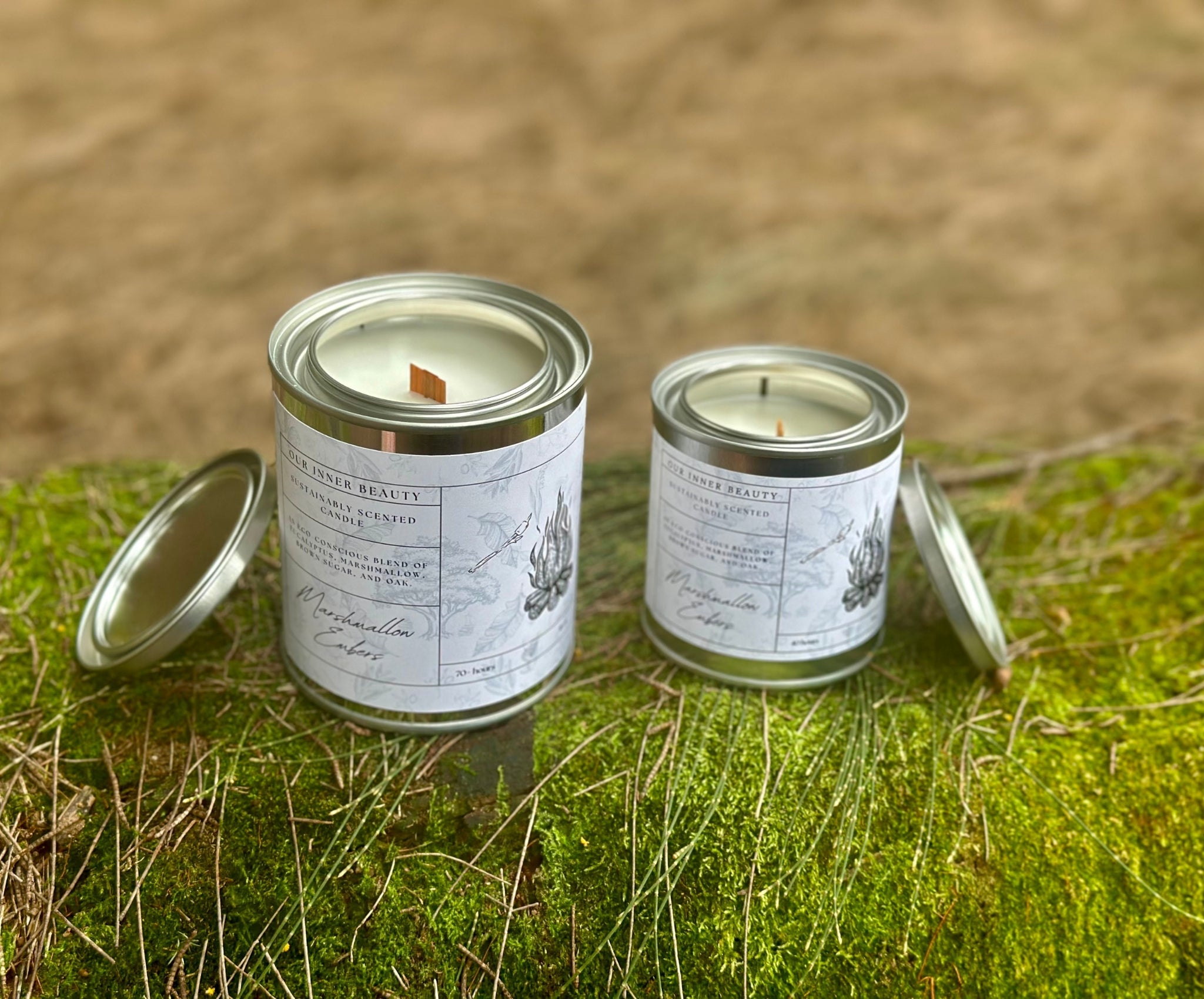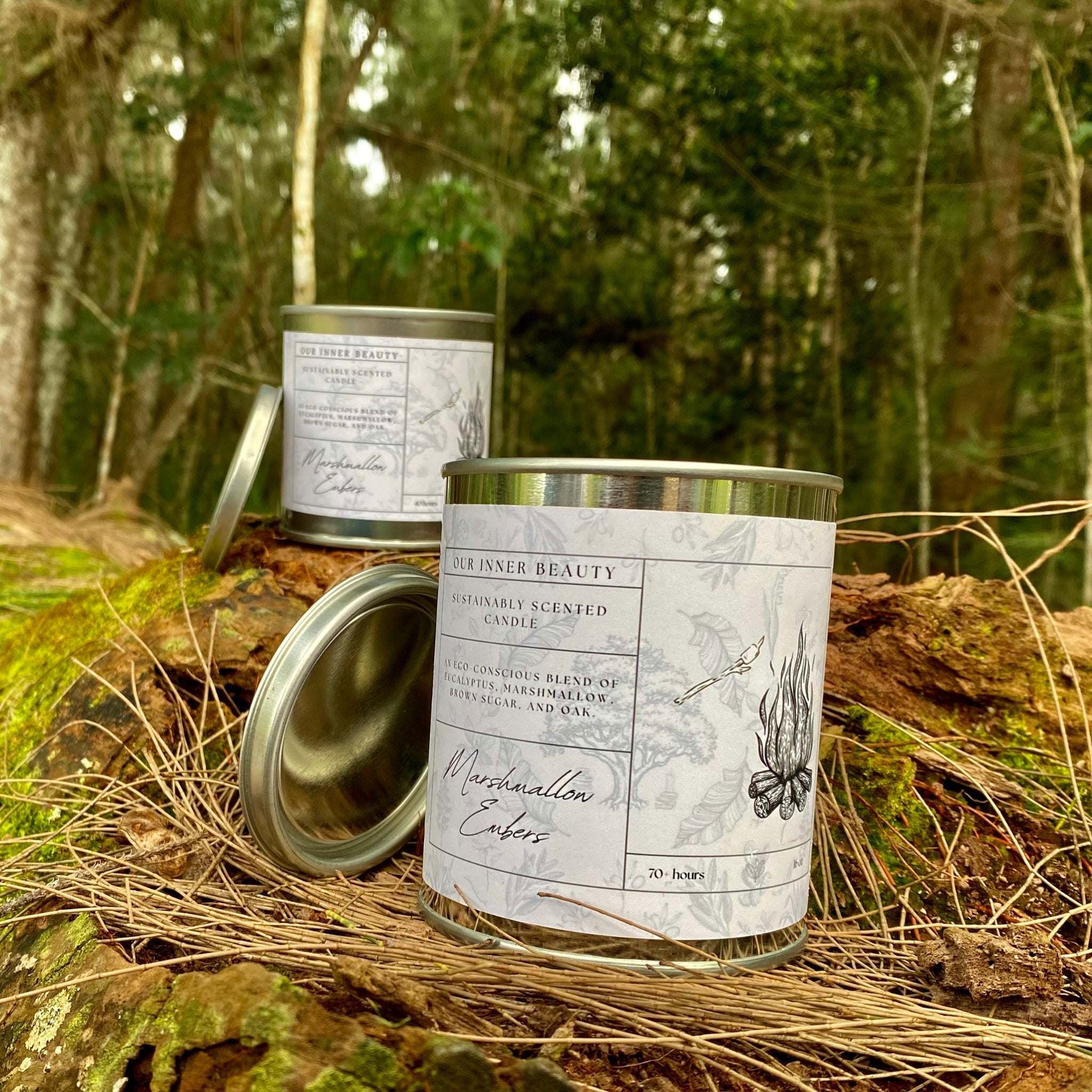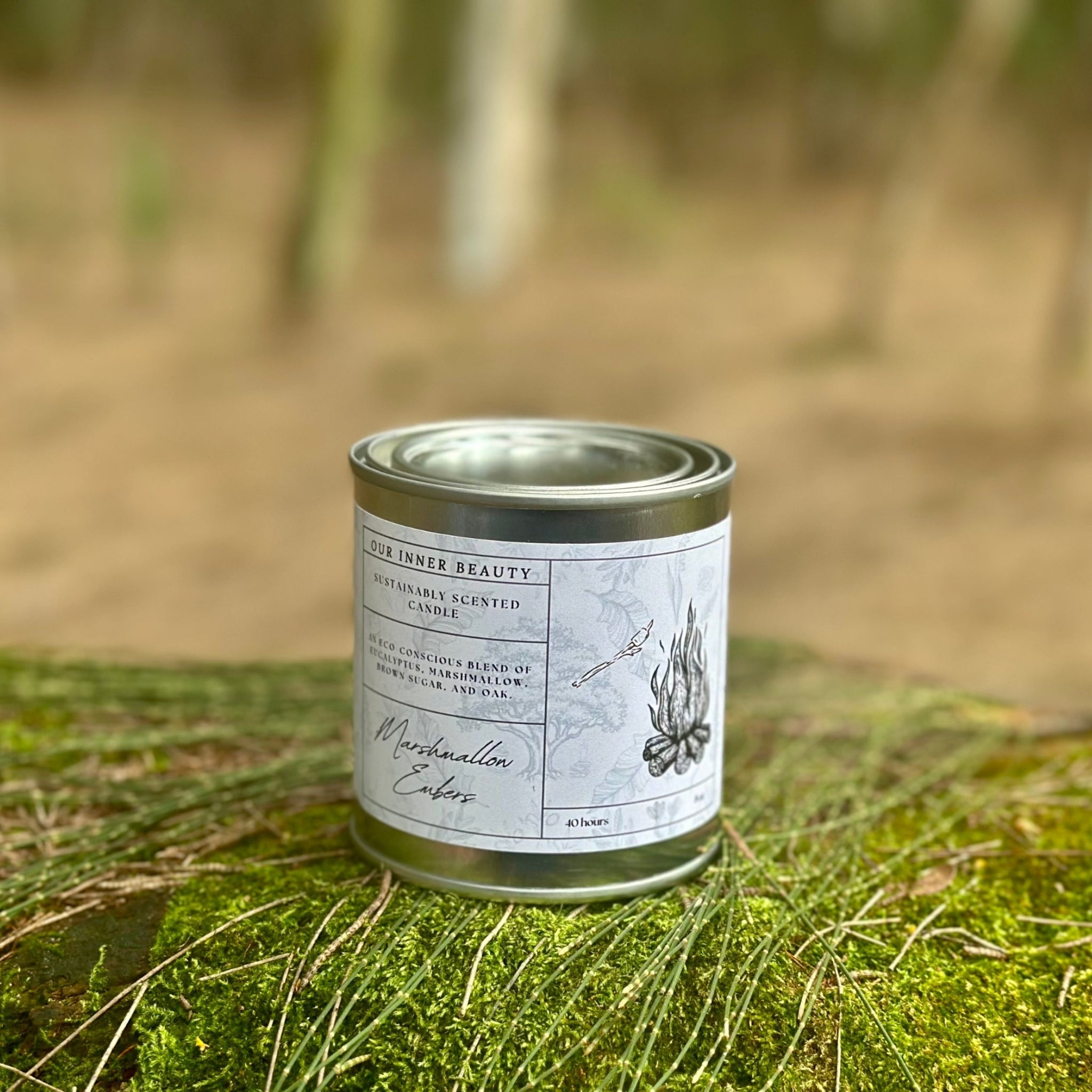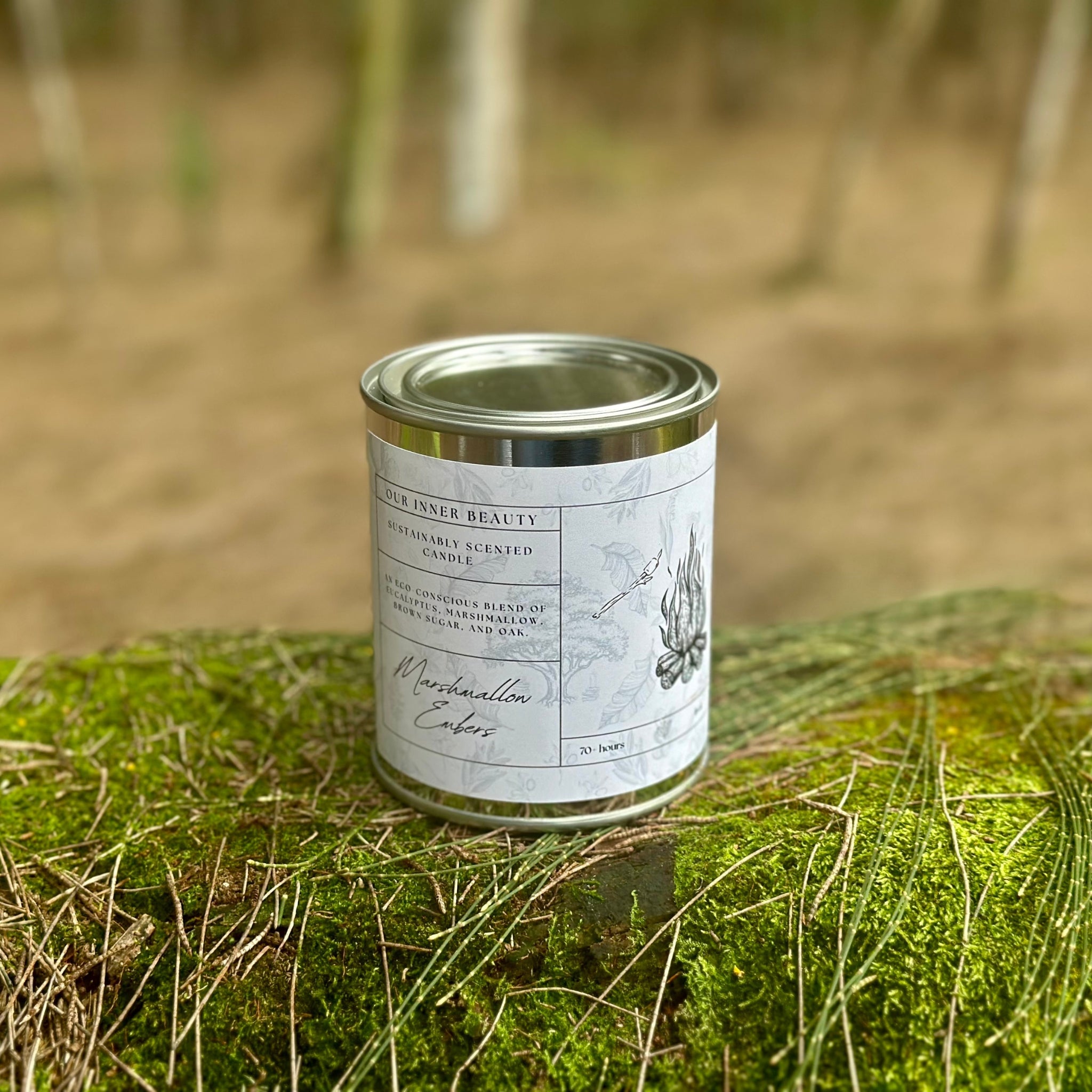 Marshmallow Embers combines the comforting scents of sweet marshmallow and sugar with the earthy warmth of oak and patchouli, evoking the coziness of a bonfire night. This certified non-toxic candle is crafted with IFRA-certified and Leaping Bunny-compliant vegan fragrance oils. Additionally, it is free from phthalates and parabens and made from renewable sources, ensuring a clean and safe burn.